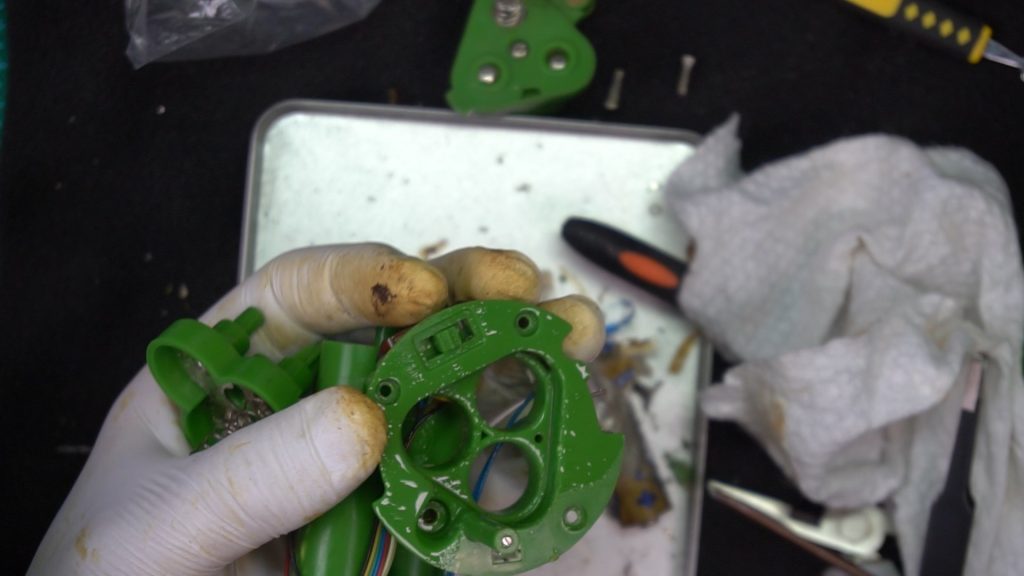 - Over time, significant grease buildup occurs inside the toy. It’s unclear where this grease originates, but the internal circuit board and components are often coated with oil residue. If the voice control fails or becomes unresponsive, the microphone component is likely the culprit.